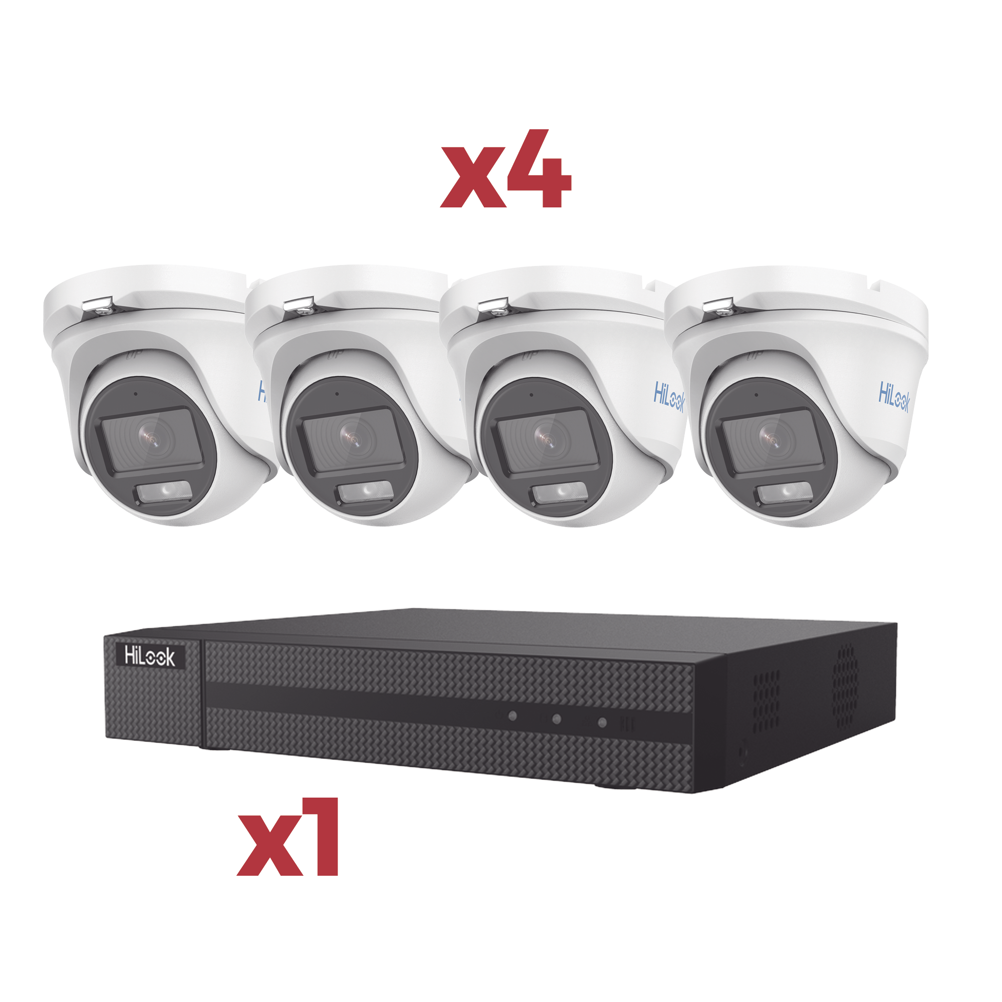 KIT 4 cámaras HILOOK 2 Megapíxel (1080pLite) / AcuSense Lite / Audio por coaxitron / 1 Bahia de disco duro / 4 Cámaras Metálicas / 2 Megapíxel tipo domo / ColorVu Lite + Micrófono Integrado